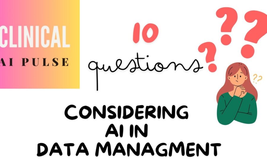 As AI promises to become integral to clinical data management, making thoughtful decisions about its use is critical. Here are ten focused questions to guide your thought process: How will AI improve the accuracy, speed, and efficiency